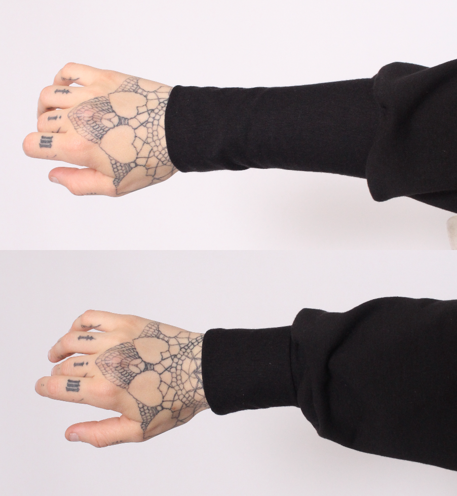 Black french terry = 95% Cotton, 5% Spandex 8oz French Terry (sourced from a sustainable company based out of Canada)