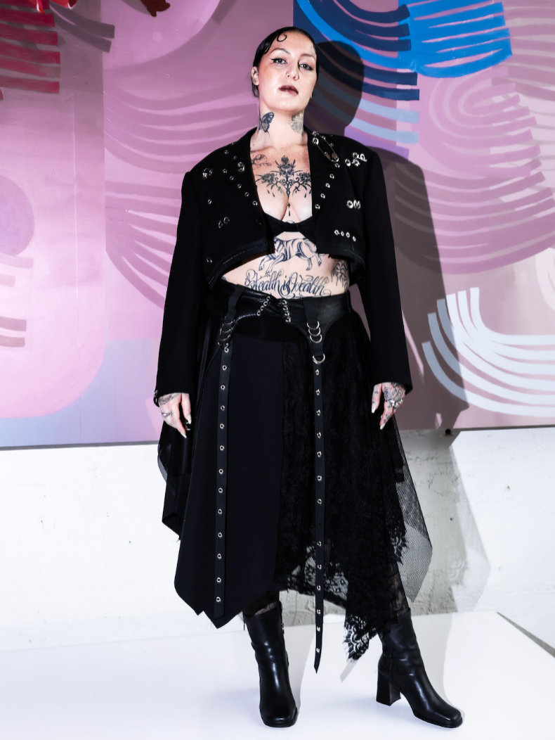 My favorite layering skirt made with multiple layers of black fabric, sheer, mesh, and lace fabric. Jersey knit bamboo cotton waist band that has stretch and is so flattering!