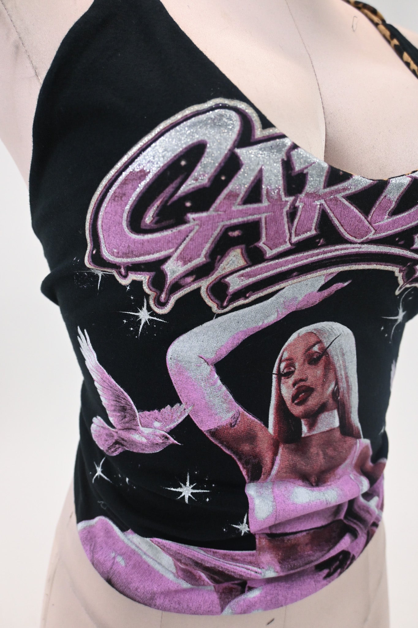 - 1 side is made using a 100% cotton Cardi B glittery band tee