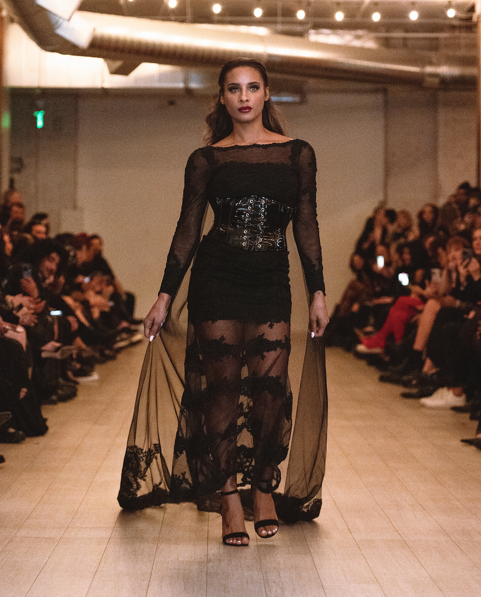 This stunning backless vintage dress was seen on Aunjoli on the runway! It was tailored and reworked, making it 1 of 1.